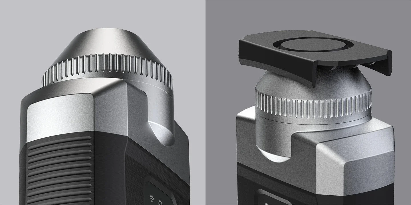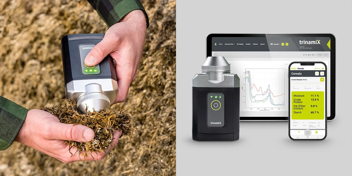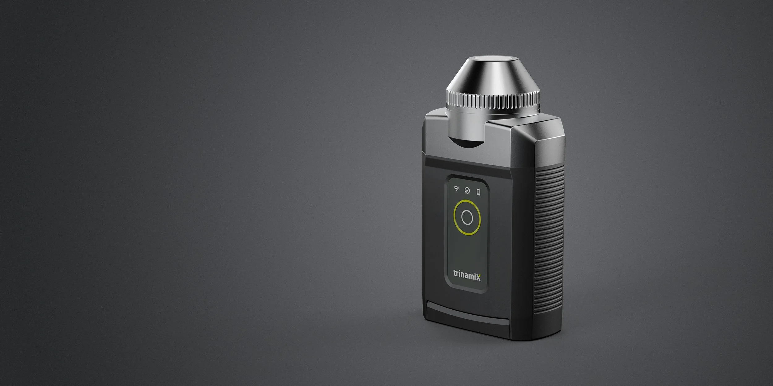 Seit 2019 arbeitet aroma:id mit trinamiX zusammen und entwickelte das Design des mobilen NIR-Spektrometers PAL One. Der Fokus lag auf Ergonomie, Funktionalität und einer klaren Formensprache, die das Gerät in verschiedenen Nutzungsszenarien optimal handhabbar macht. Besondere Herausforderungen bestanden in der Verbindung von Robustheit und kompakter Bauweise. aroma:id schuf eine klare, geometrische Gestaltung mit intuitiver Benutzeroberfläche und integrierte funktionale Details wie den wechselbaren Messkopf und die geschützte Weißreferenz am Gehäuseboden.