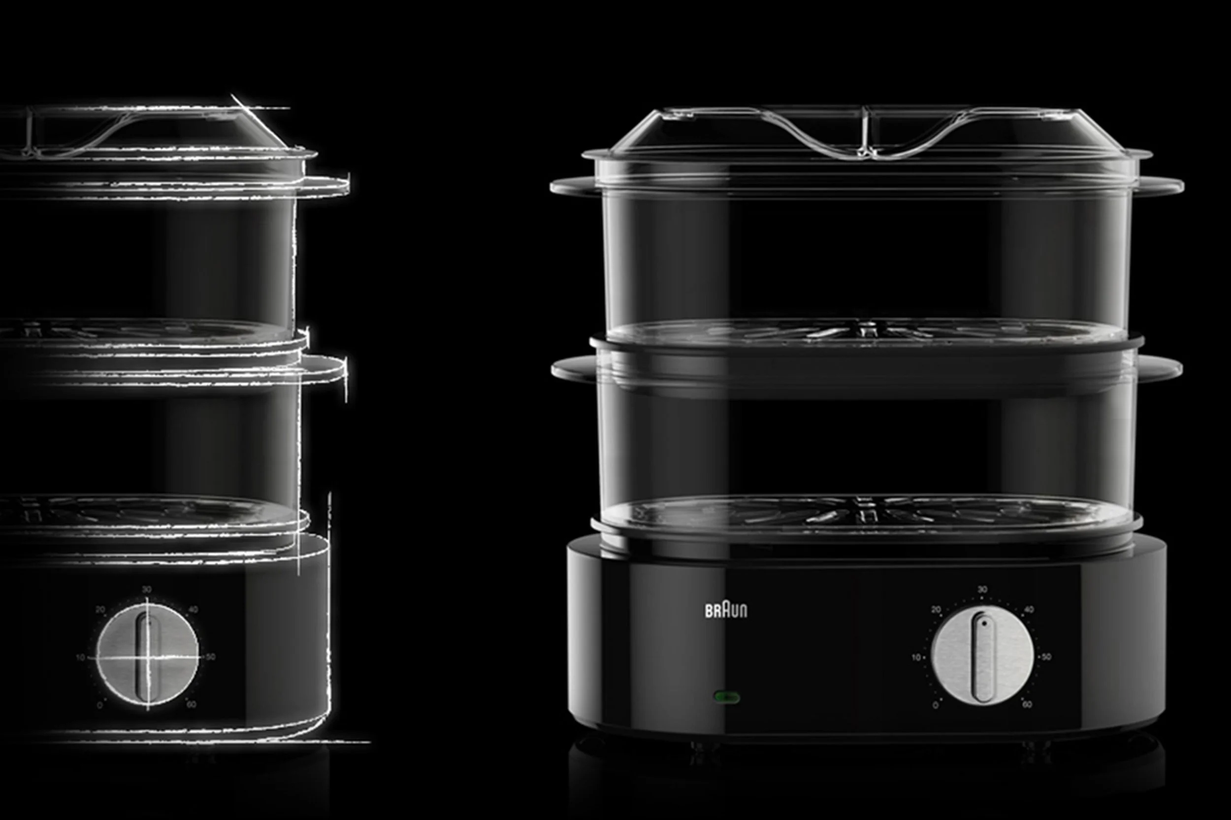 Braun Household was supported by aroma:id in the Identity Collection, which is defined by its compact and ergonomic design. The series combines powerful performance with versatility, reflected in the clean design featuring black high-gloss plastics and stainless steel. A highlight of the collaboration was the FP 5150 food processor, with its compact architecture, stable base, and intuitive controls. The steamer from the series also focuses on multifunctionality and sleek design, with stackable BPA-free containers that allow for optimal presentation and easy storage.