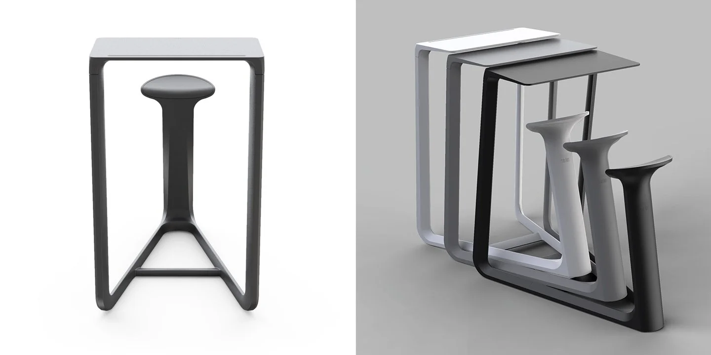 For Sedus Stoll AG, aroma:id developed a mobile workstation that meets the demands of flexible work environments. se:note was created based on a study of trends such as work-life blending and coworking. In close collaboration with Sedus, the compact furniture combining table and seat was fully developed in CAD and optimized to production readiness. Ergonomics studies supported the process. With only four components, se:note provides a space-saving, stable solution for impromptu meetings, featuring practical details like a pen tray, grip recess, and stackability.